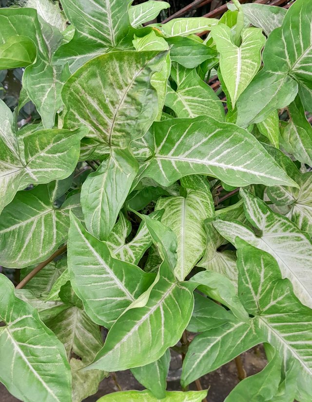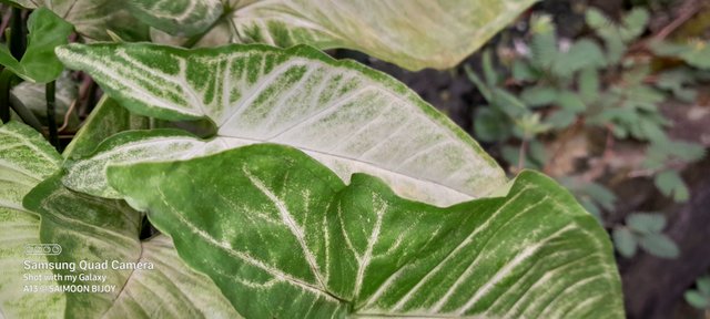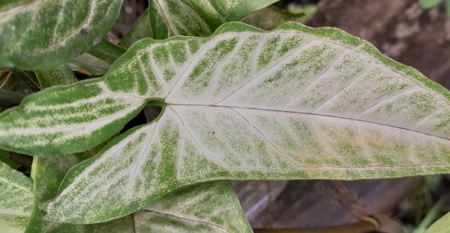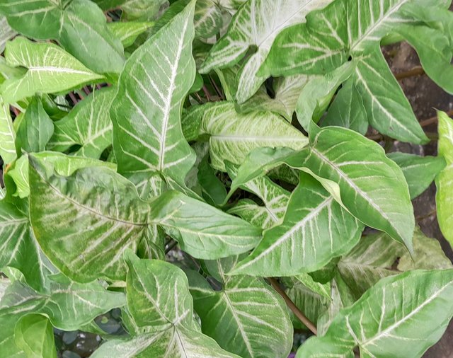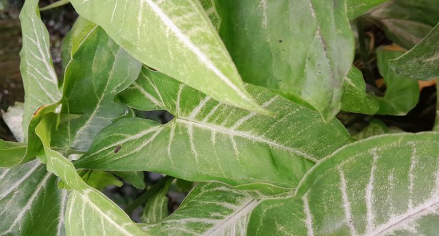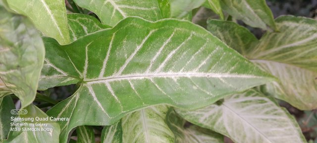 The shape of this leaf is completely different. Apart from the green color of these leaves, there are some white spots in the middle of these leaves. As a result the beauty of the leaf was revealed very well. It looked very beautiful because of these spots of white color in the leaves.
