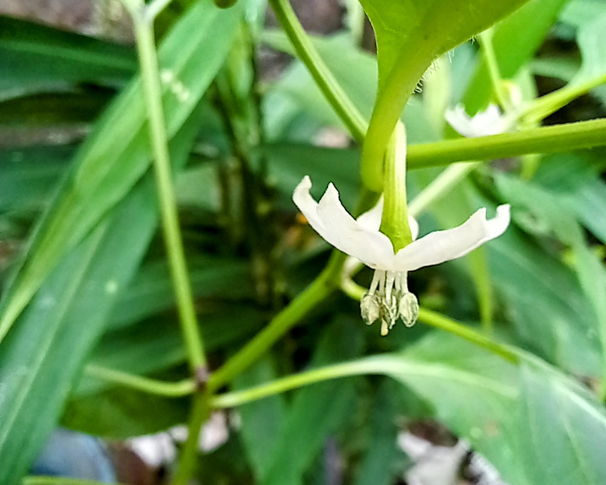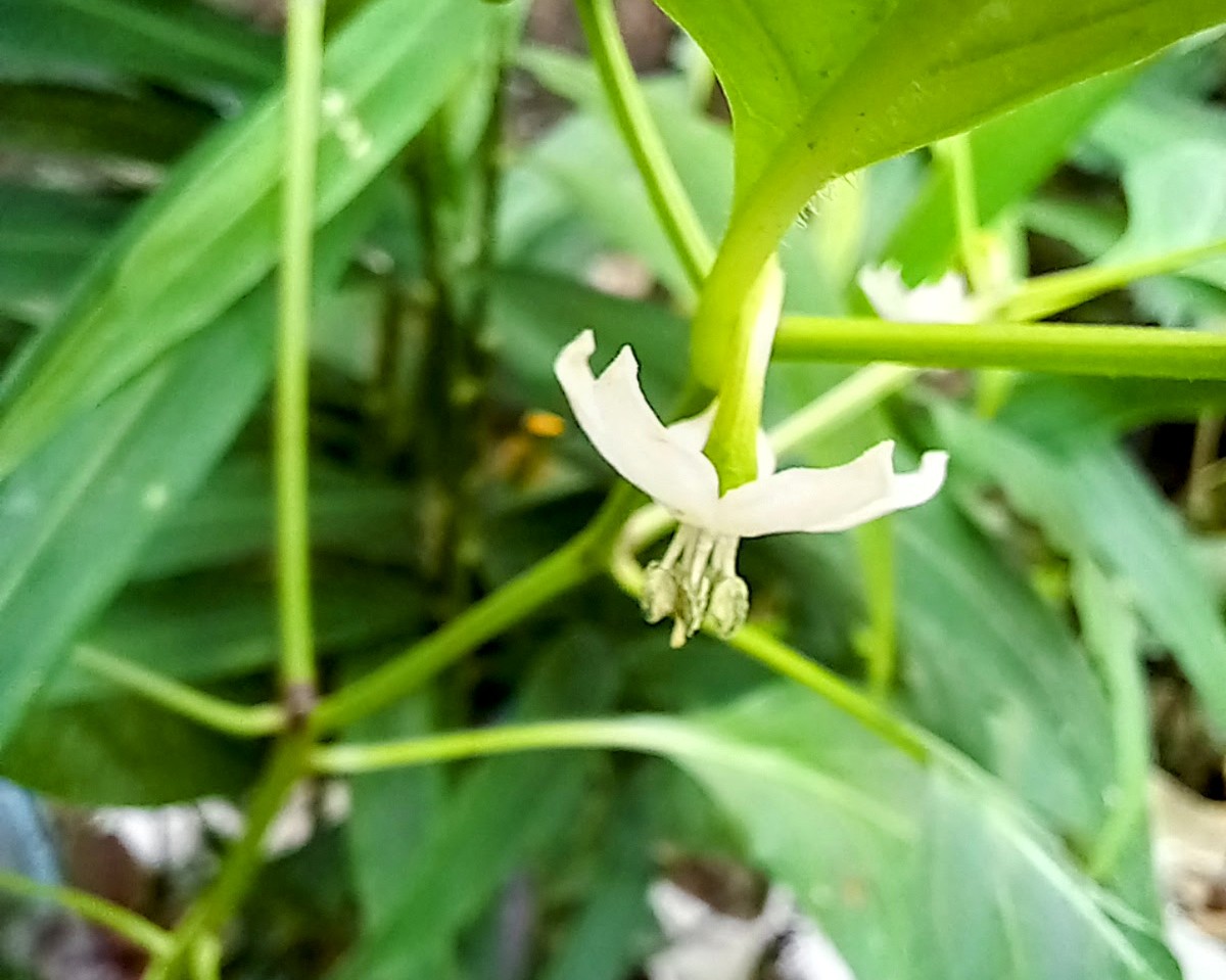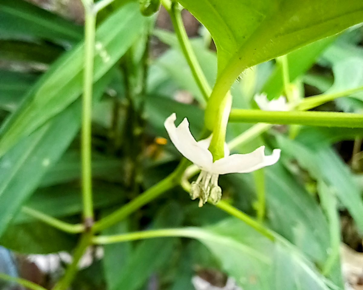 Friends, my photography gift for you is, "Random photography of a beautiful white flower blooming on a chili plant planted at home".