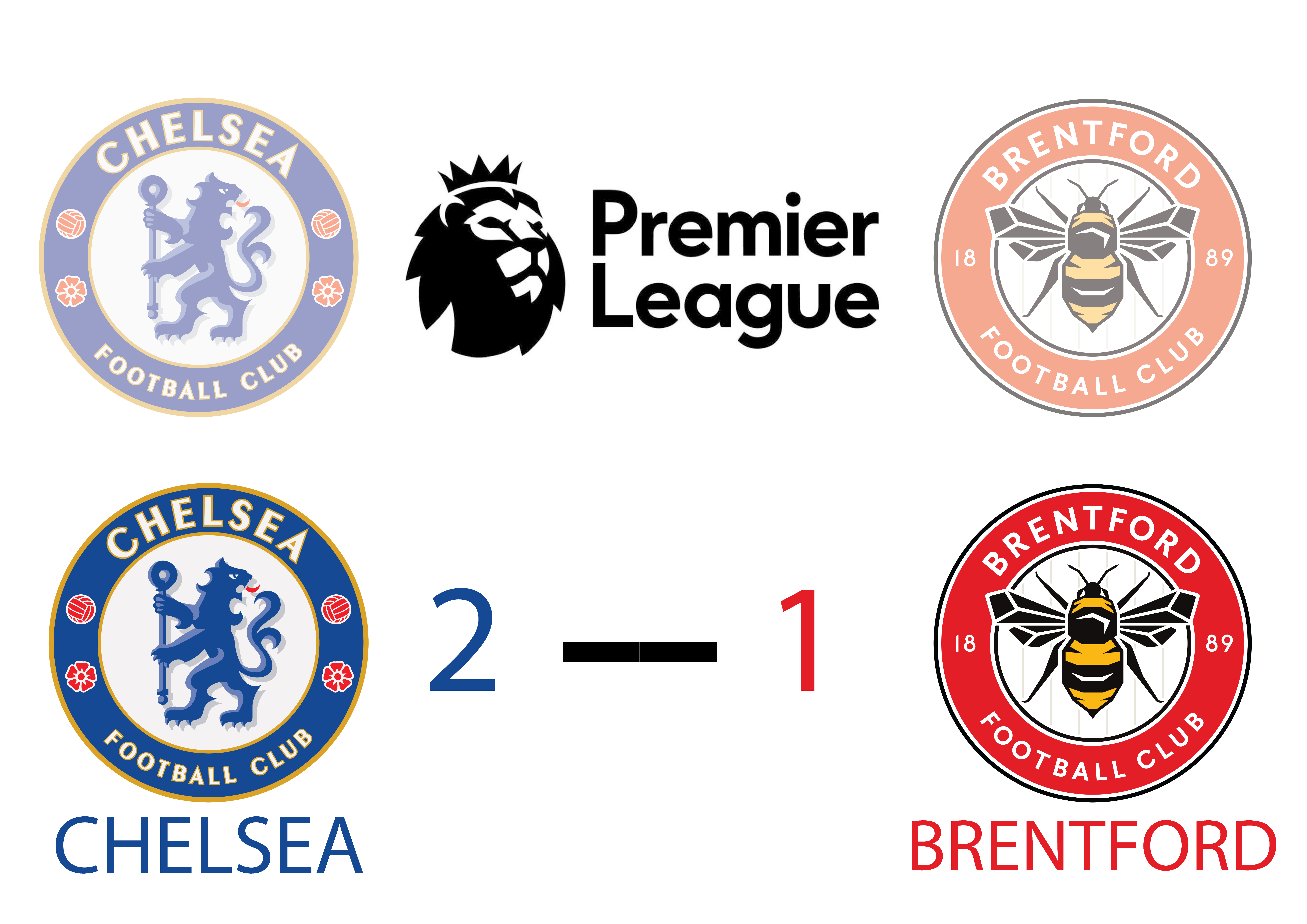 Brentford F.C. এর টোটাল শট ছিল মাত্র ৯ টা এবং ও টার্গেট শট ছিল ৪ টা। বল দখলের লড়াইয়ে অনেকাংশে পিছিয়ে ছিল Brentford F.C. তাদের ছিল মাত্র ৩৮% বল দখল। Brentford F.C. এর মোট পাশ ছিল ৩২৭ টি তার মধ্যে সঠিক পাশ ছিল ২৪৮ টি অথবা ৭৬% যা Chelsea F.C. এর চেয়ে অনেক পিছিয়ে। Brentford F.C. তাদের ফাউল ছিল ৭ এবং ইয়েলো কার্ড ছিল ২ টা। অফসাইড ছিল ৩ টা এবং কর্নার ছিল ৫ টা। Brentford F.C. এর হয়ে সম্মানসূচক একমাত্র গোল করেন bryan mbeumo ৯০ মিনিটে। তারা অবস্থান করছে পয়েন্ট টেবিলের ১১ নাম্বার পজিশনে।