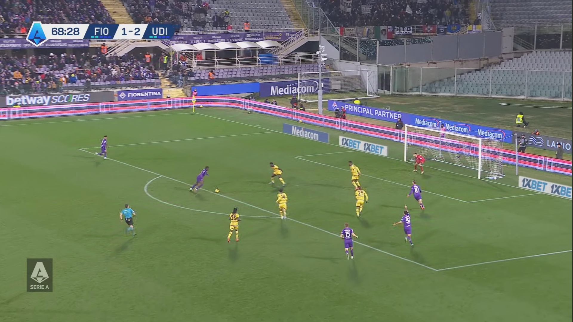 Serie A লীগের অপর এক খেলায় মুখোমুখি হয়েছে ফিওরেন্টিনা বনাম ইউডিনিস। এই ম্যাচে ইউডিনিস ২-১ ব্যবধানে জয় পায়৷ ম্যাচের মাত্র ৮ মিনিটে নাটকীয় ভাবে পেনাল্টি পায় ফিওরেন্টিনা এবং বল ও জালে জডান। এরপর ম্যাচের মোড ঘুডে যায় ৪৯ মিনিটে ফিওরেন্টিনার প্লেয়ার এর ভুল পাশে বল জালে পাঠান ইউডিনিস এর প্লেয়ার L.Lucca, এরপর ম্যাছের ৫৭ মিনিটে ২য় জয়সূচক গোল করে দলকে এগিয়ে নিয়ে যায় ইউনিডিস এর প্লেয়ার Thauvin.এরপর আক্রমণ করে ও বল জালে পাঠাতে পারেনি উভয় দল৷ ফলে ২-১ ব্যবধানে জয় পায় ইউনিডিস৷