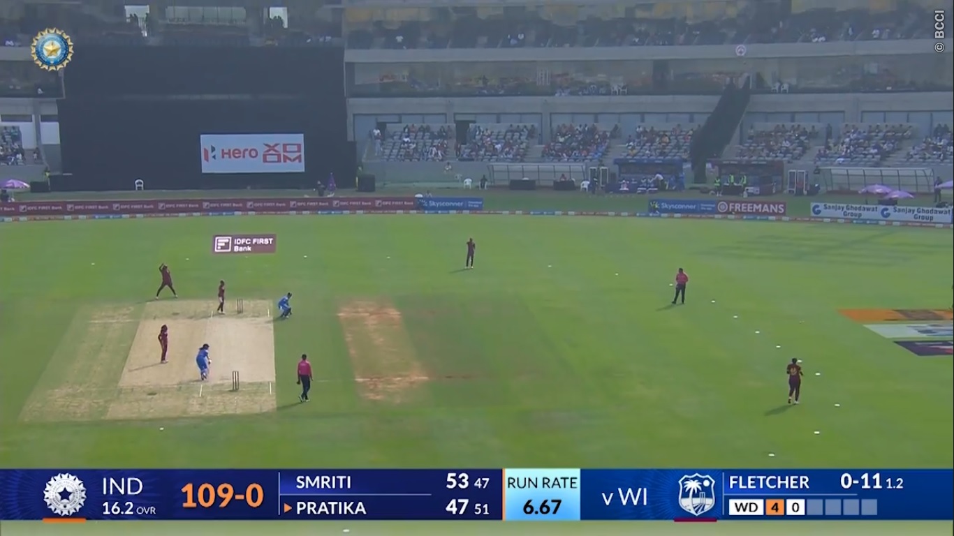 শুরুতে ব্যাট করতে নামা ভারত মহিলা ক্রিকেট দল এর প্লেয়ার S.Mandhana সাত ৪ এবং দুই ৬ এর সাহায্যে ৫৩ রান করেন। P.Rawal এর ব্যক্তিগত রান ৭৬ তার ইনিংসে ছিল দশ ৪ এবং এক ৬ দারুন ইনিংস খেলে দলকে ভালো শুরু এনে দেন এই দুজন। তাছাড়া J. Rodrigues ও তার ব্যক্তিগত ৫২ রান করেন দলকে নিয়ে যায় বড় টার্গেটে সহযোগিতা করা। আরেক ব্যাটসমেন যার কথা না বললেই নয় H.Deol তার ব্যক্তিগত রান ১১৫ তার ইনিংসে ছিল ষোলো টি ৪ কোনো ছক্কা ছিলোনা। তার ইনিংস দলকে বিশাল টার্গেটের জন্য দারুন ভাবে সহযোগিতা করে। যার ফলে তাদের স্কোর দাঁড়ায় ৩৫৮ তে ফলে ওয়েস্টইন্ডিজের জন্য লক্ষ্য ৩৫৯ রানের বিশাল টার্গেট।