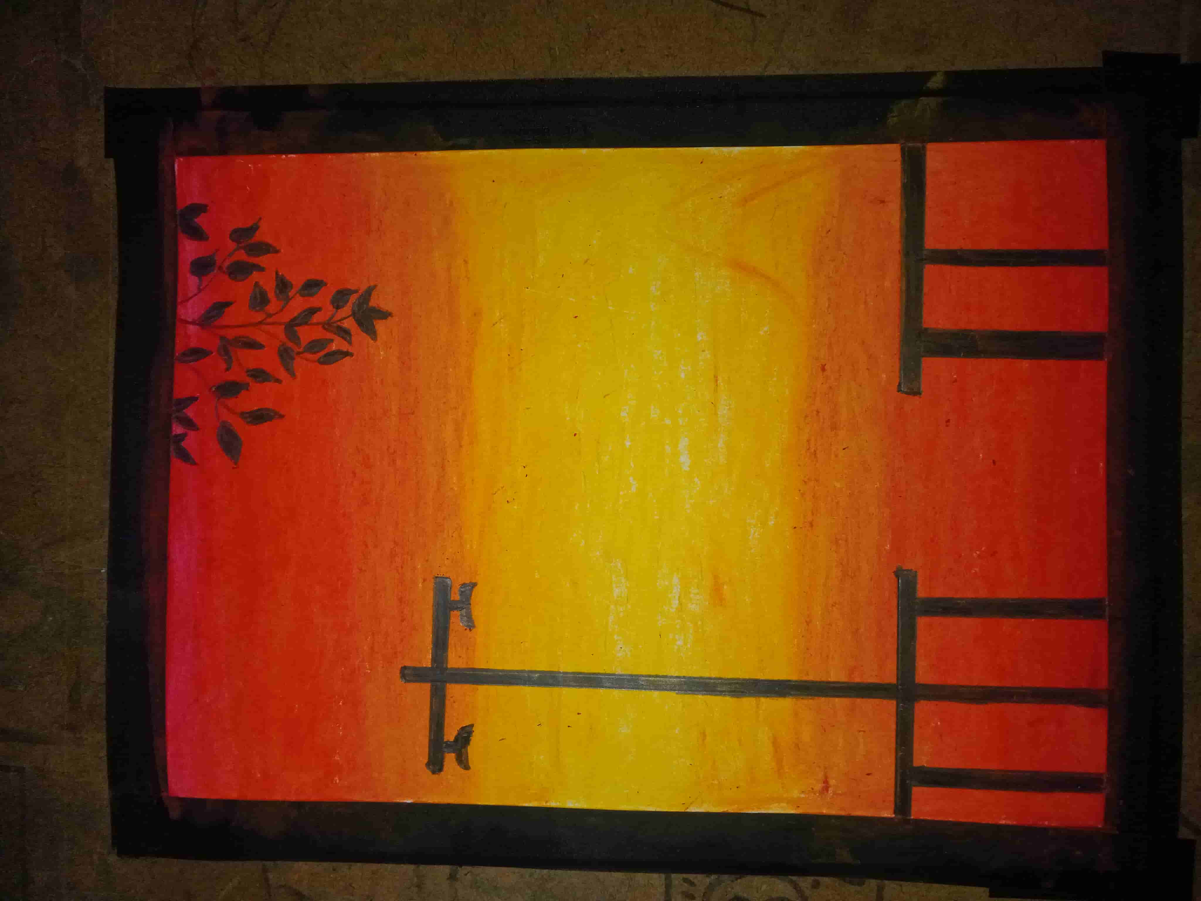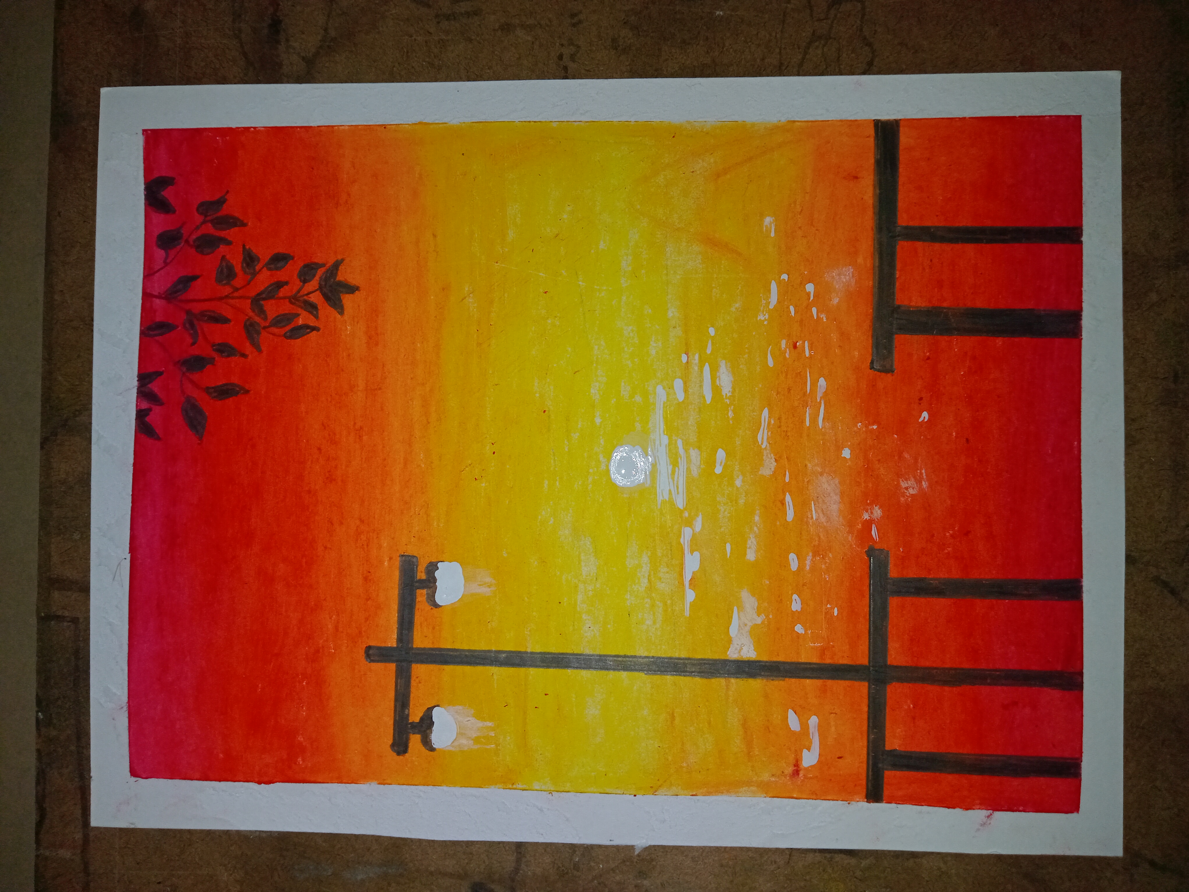Now with a curation pen I gave the setting sun and the white part of the light of the lamp post. To understand that the lights are on.